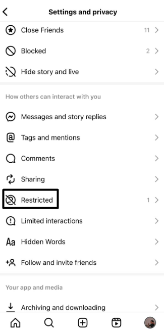 2.SiinäAsetuksetOsa, valitseRajoitettuallaKuinka muut voivat olla vuorovaikutuksessa kanssasiosa.