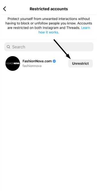 3.Lopulta etsi tili, johon haluat lähettää viestejä ja napsautaRajoittavasen vieressä.