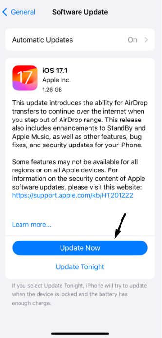 3.Etsi uusia iOS -päivityksiä ja napsautaPäivitys nytPainike asentaaksesi ne puhelimeesi.
