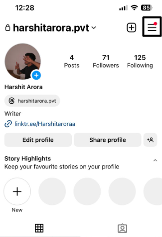 1.AvaaInstagram -sovellusAndroid- tai iOS -laitteessa ja napauta rivejä oikeassa yläkulmassa.