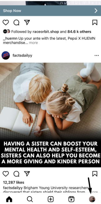 1.AvaaInstagram -sovellusvalitse puhelimessa ja vasemmassa alakulmassaProfiilivaihtoehto.