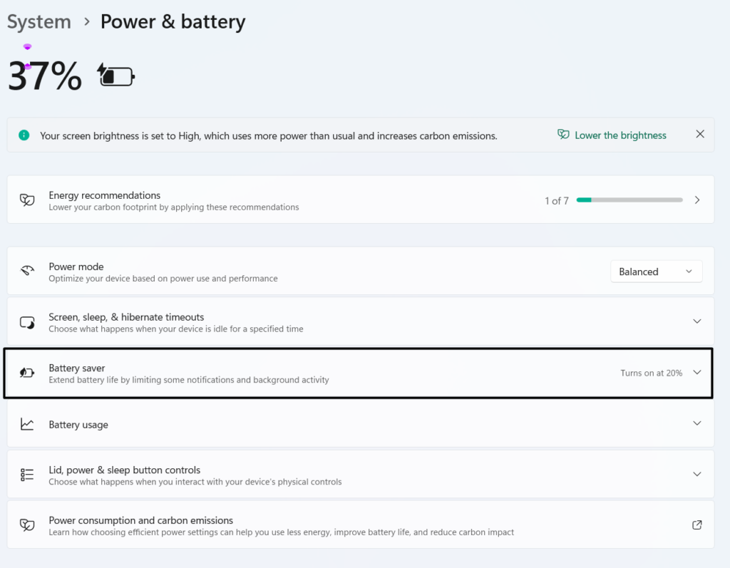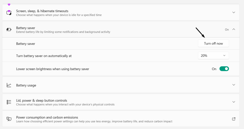 Yksi syy Intel Unisoniin, joka ei toimi Windows 11: ssä, voi olla akun säästäjä, koska tämä tila estää joitain toimintoja Windows 11 PC: n akun tallentamiseksi. Tällöin ehdotamme sinuaPoista tämä tila käytöstätietokoneellasi tai kannettavalla tietokoneella ja tarkista, ratkaiseeko se ongelman. Voit tarkistaa alla mainitut vaiheet niin: