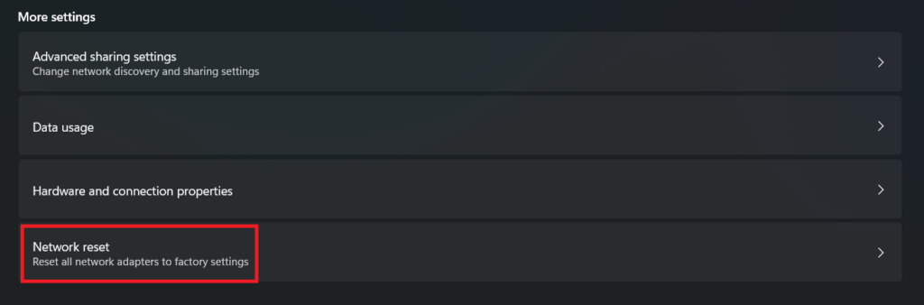 4.Vieritä alas ja napsautaVerkon palautusvaihtoehto.
