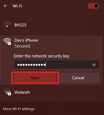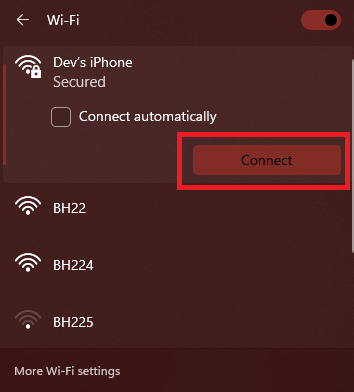 4.Valitse iPhonen nimi käytettävissä olevien verkkojen luettelosta ja napsautaYhdistääpainike.