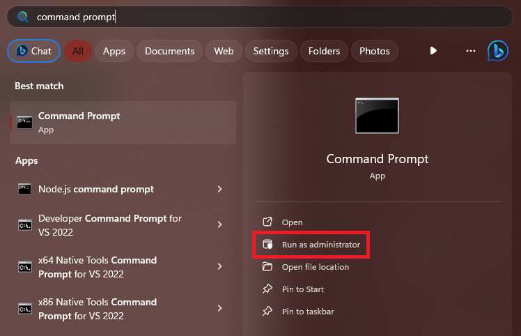 1.PainaVoittaaKirjoita avain avataksesi Käynnistä -valikkoKomentokehotusja napsautaJärjestelmänvalvojana.
