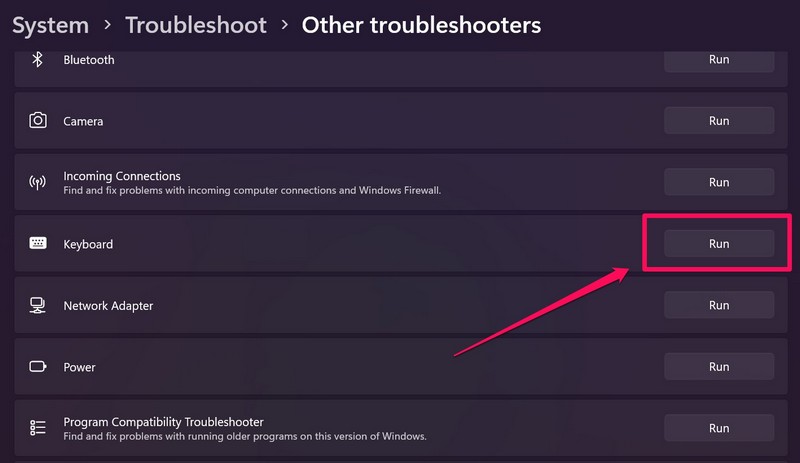4. Suorita näppäimistön vianetsijä Windows 11: ssä