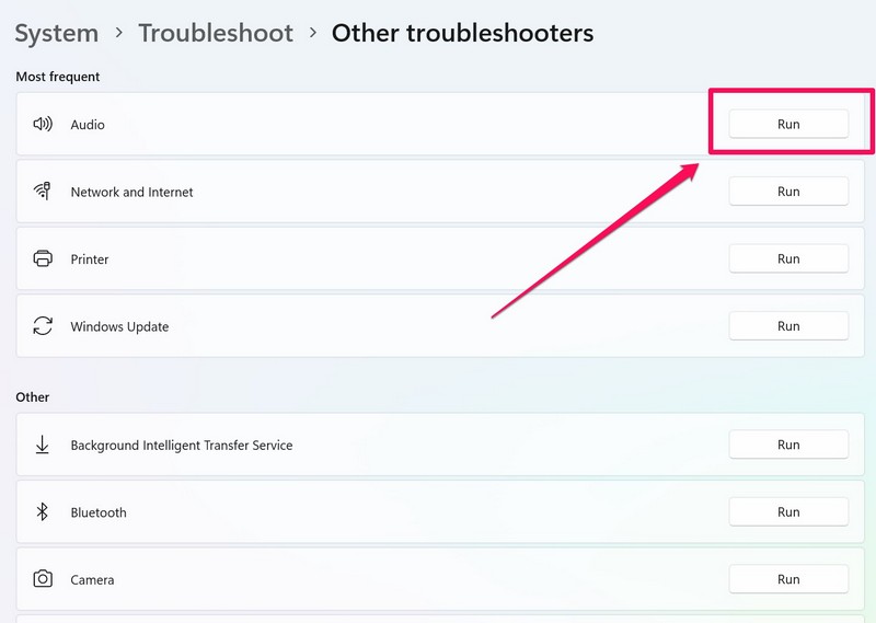 4.Napsauta nytJuokse-painiketta vieressäAudioensin vianmääritys ja odota prosessin valmistumista.