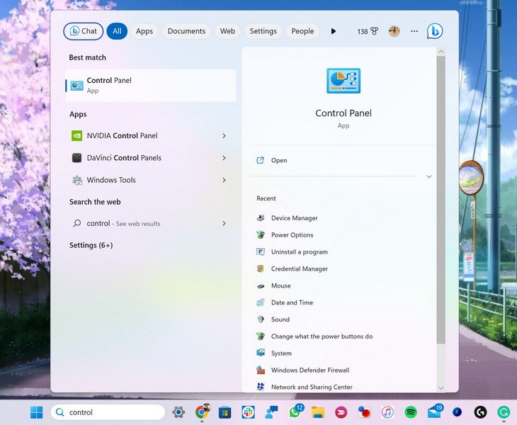 2.Paina Enter tainapsauta Ohjauspaneeli-vaihtoehtoahakutuloksissa avataksesi sen.