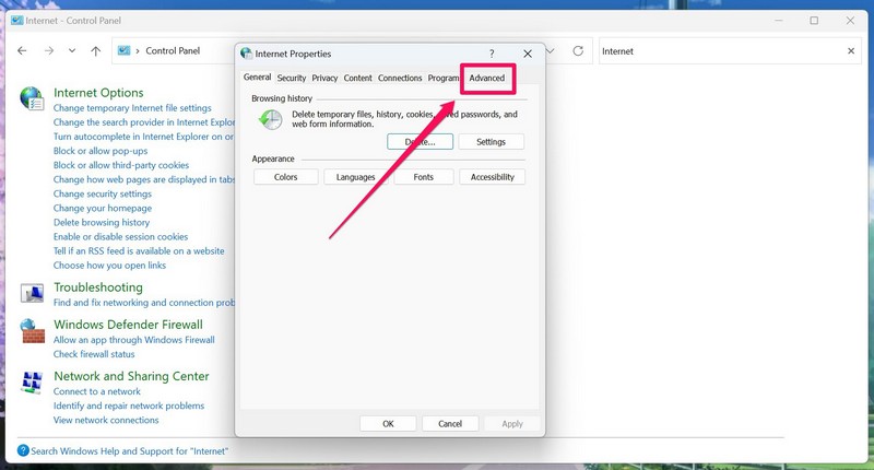 7.Sulje Internet-asetukset-ikkuna ja Ohjauspaneeli-ikkuna.