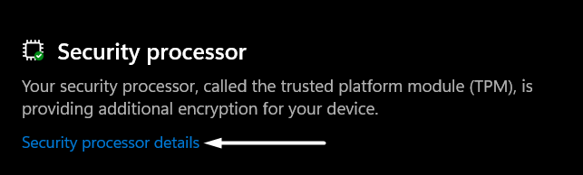 2.SiinäLaitteen turvallisuusnapsautaTietoturvaprosessorin yksityiskohdatsiirtyä siihen osaan.