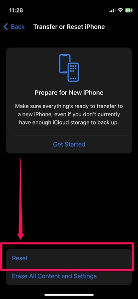 3.Vieritä alaspäin löytääksesiSiirrä tai nollata iPhonevaihtoehto jaNapauta sitä avataksesi.