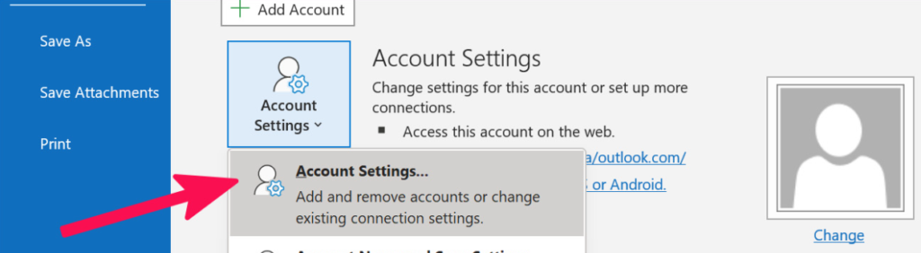 2.Napsauta sittenTilin asetukset-vaihtoehto ja valitse sittenTilin asetukset…vaihtoehto pudotusvalikosta.