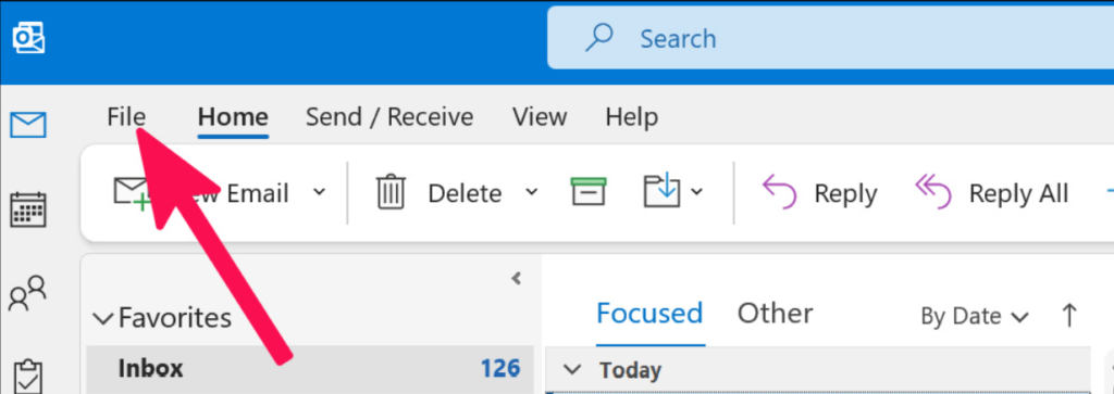 1.AvaaMicrosoft Outlook -sovellusWindows 11 -tietokoneellasi ja napsautaTiedostovaihtoehto ylävalikosta.
