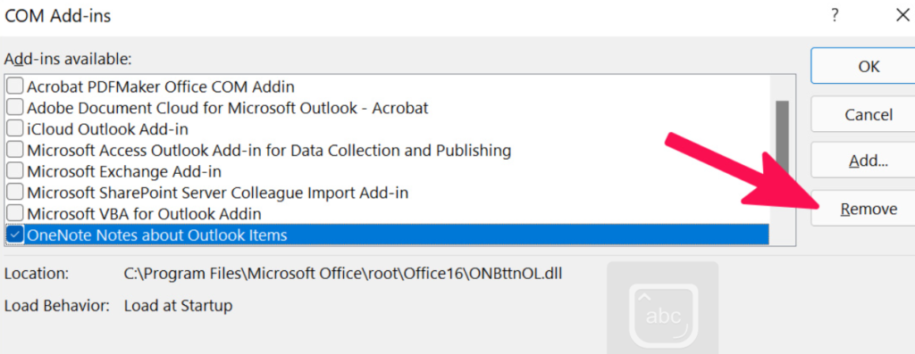 4.NapsautaPoistaa-painiketta ruudussa poistaaksesi kaikki valitut lisäosat Microsoft Outlookista.
