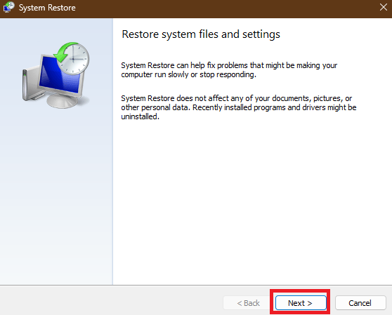 3.NapsauttaaSeuraavaSystem Restore -sivun painike.