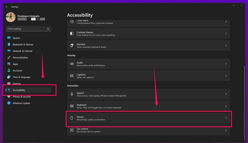 3. Poista hiiren näppäimet käytöstä Windows 11:n asetuksista
