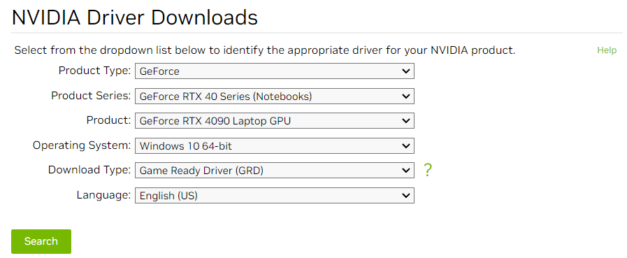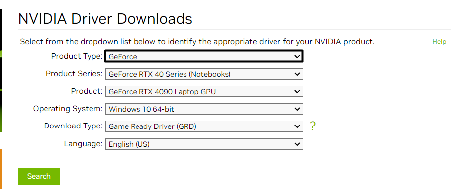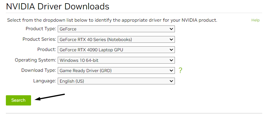 3.Valitse NVIDIATuottisarja:avattava valikko.