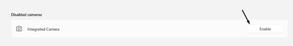 4.Kun olet valmis, napsautaOttaa käyttöönPainike näytöllä, jotta kamera voidaan ottaa uudelleen tietokoneellasi.