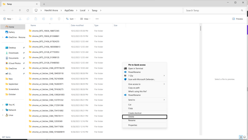 2.SiinäLämpötilaKansio, käytä CTRL + A -pikanäppäintä valitaksesi kaikki sen tiedostot ja kansiot.