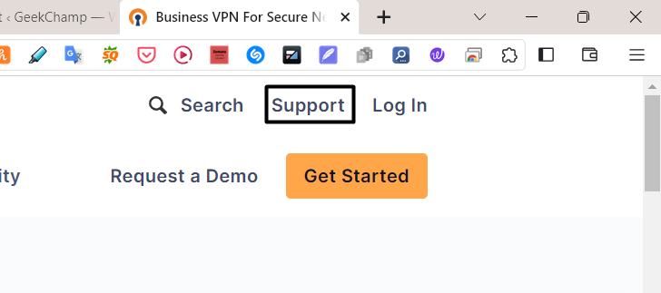 1.NapsauttaatässäVierailla selaimesi OpenVPN: n virallisella sivustolla ja napsautaTukeaylhäällä.
