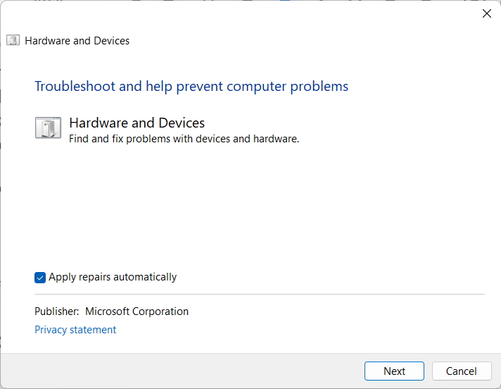 Monet käyttäjät kertoivat, että joskus virhe ilmestyy viallisen laitteistolaitteen takia. Voi olla mahdollista, että tietokoneeseen liitettyjen laitteistokomponenttien ongelma on. Voit etsiä laitteistoongelmia Windows Hardware -vianmäärityksellä. Alla mainitut vaiheet osoittavat saman.