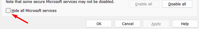 3.SiirtyäHuoltoja tarkistaPiilota kaikki Microsoft -palvelutValintaruutu.