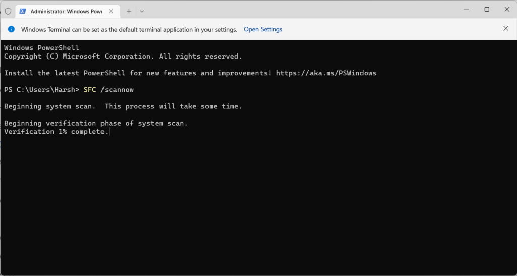 1.Avata uudelleenTerminaalisovellusja tyyppi:SFC /SCANNOW