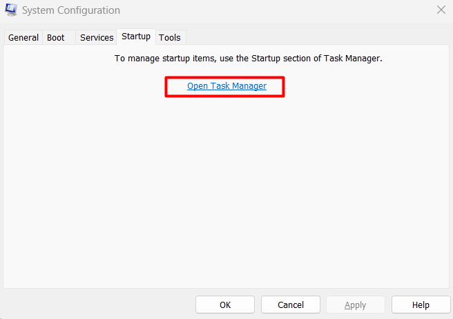 6.SiirtyäKäynnistysvälilehtija napsautaAvoin tehtävähallinta.