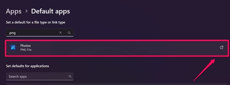 4. Aseta oikea oletussovellus PNG-tiedostoille Windows 11:ssä