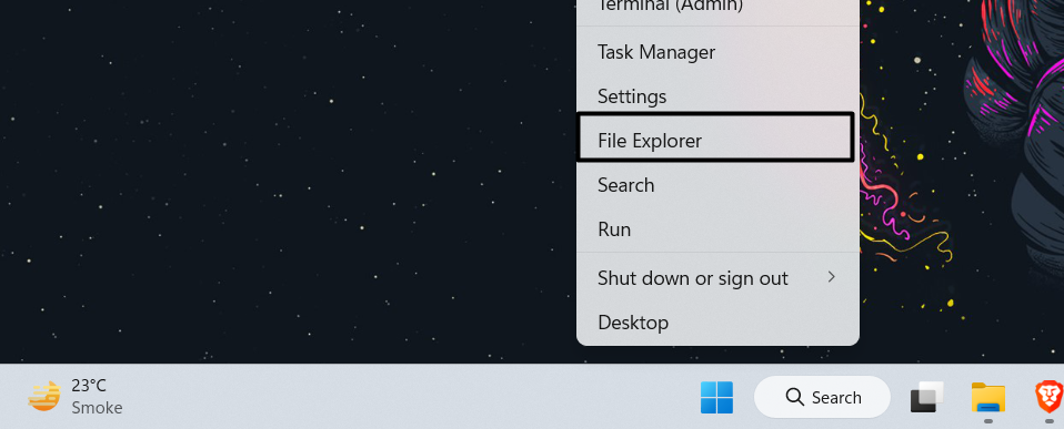 1.Napsauta hiiren kakkospainikkeellaKäynnistyskuvakePC: n tehtäväpalkista ja valitseTiedostotutkijaValinta valikosta.
