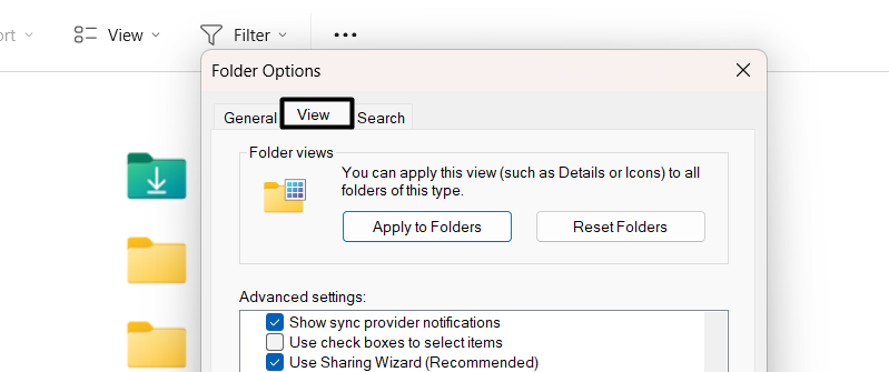 3.Seuraavassa ikkunassa siirryNäkymäja siirry sittenLisäasetuksetsen osa.