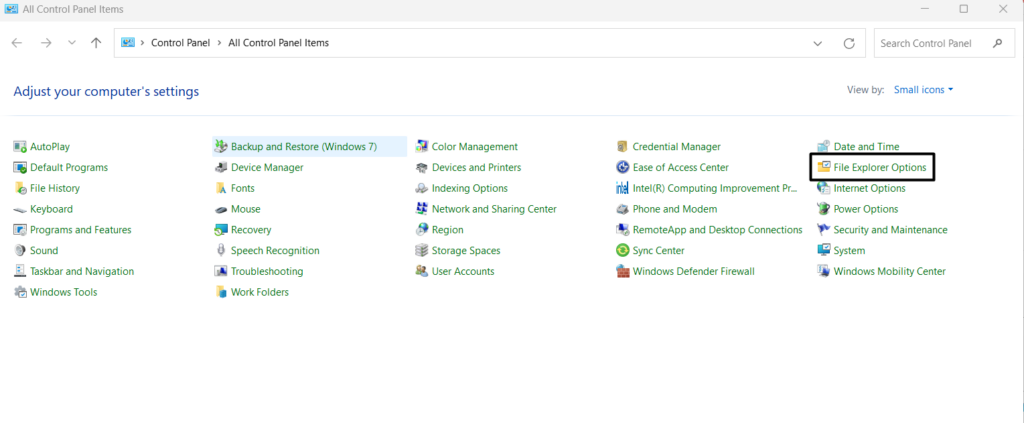 2.SiinäOhjauspaneeliIkkuna, valitseTiedostotutkija VaihtoehdotJa meneNäkymävälilehti.
