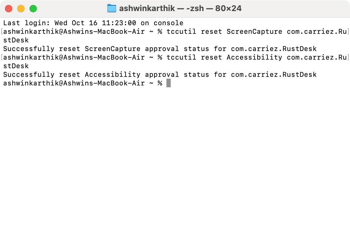 Tccutil Reset ScreenCapture com.carriez.rustdesk