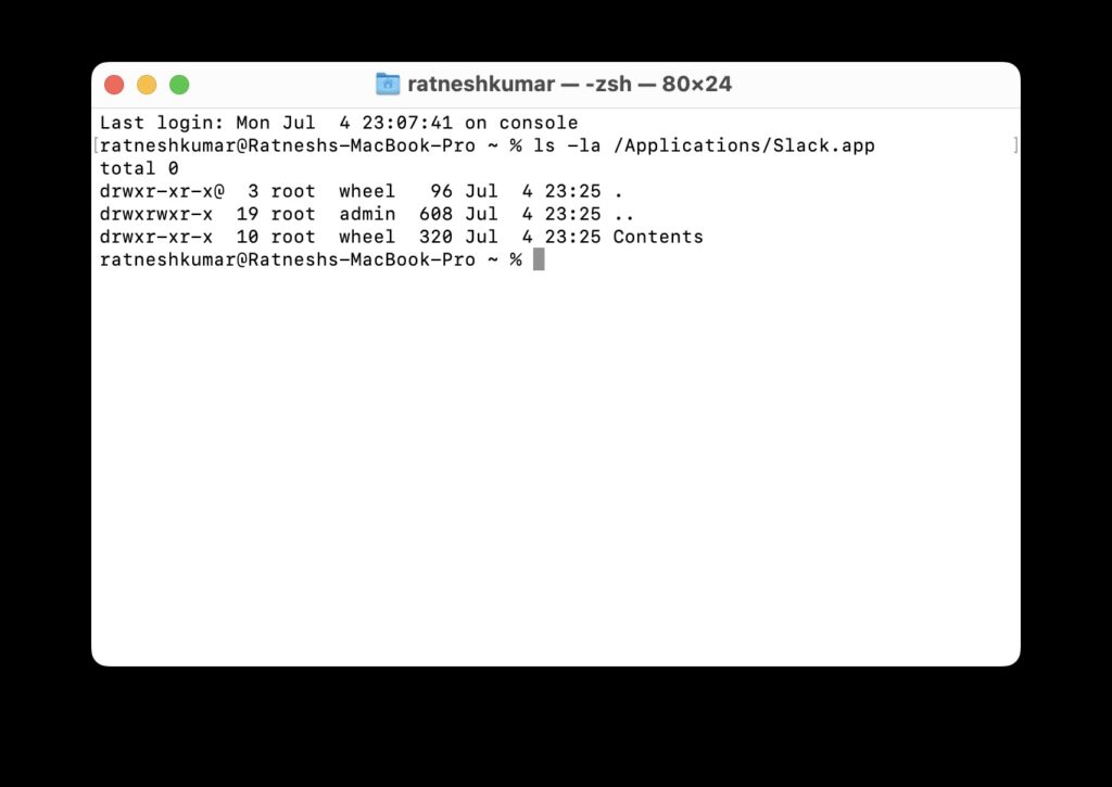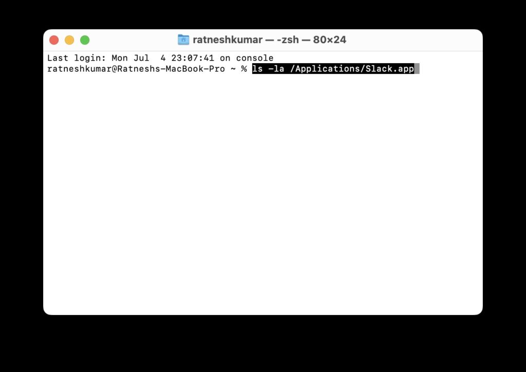3.Kirjoita pääteikkunaanls -la /Applications/Slack.appja osuiEnter.