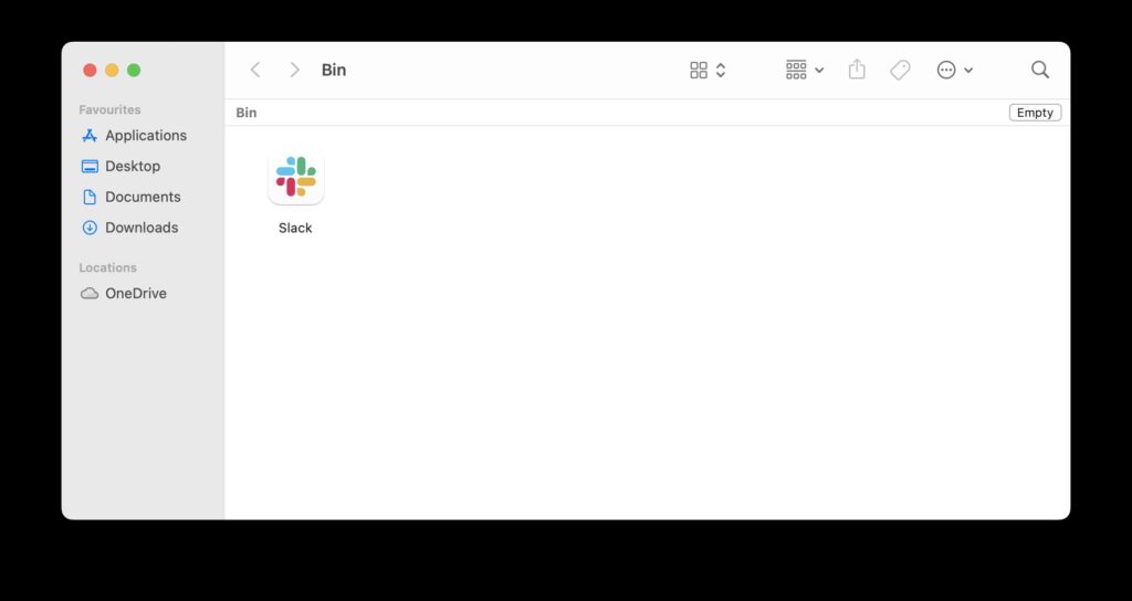 6.ValitseTyhjennä roskakoripoistaaksesi Slackin asennuksen kokonaan.