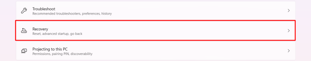 Järjestelmän virkistäminen viittaa järjestelmän nollaamiseen tyhjentämättä kiintolevylle tallennettuja sovelluksia ja muita tietoja. Yleensä yhdeksän kymmenestä kertaa järjestelmän palauttaminen ratkaisee ongelman, ja on myös hyvä käytäntö parantaa järjestelmän suorituskykyä. Voit noudattaa alla mainittuja vaiheita Windows 11 -tietokoneen palauttamiseksi: