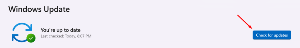 3.Napsauta nytTarkista päivityksetVaihtoehto antaa järjestelmän hakua odottamaan Windows 11 -päivitykset.