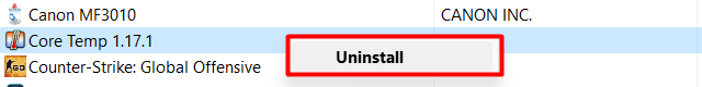 4.Viimeiseksi, valitseAsennuksen poistaminenKontekstuaalisesta valikosta.