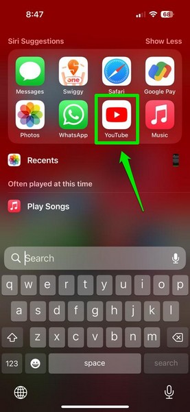 3.Sen jälkeen kun se on suljettu,Etsi YouTube -sovellusiPhonellasi jaNapauta sitä uudelleen.