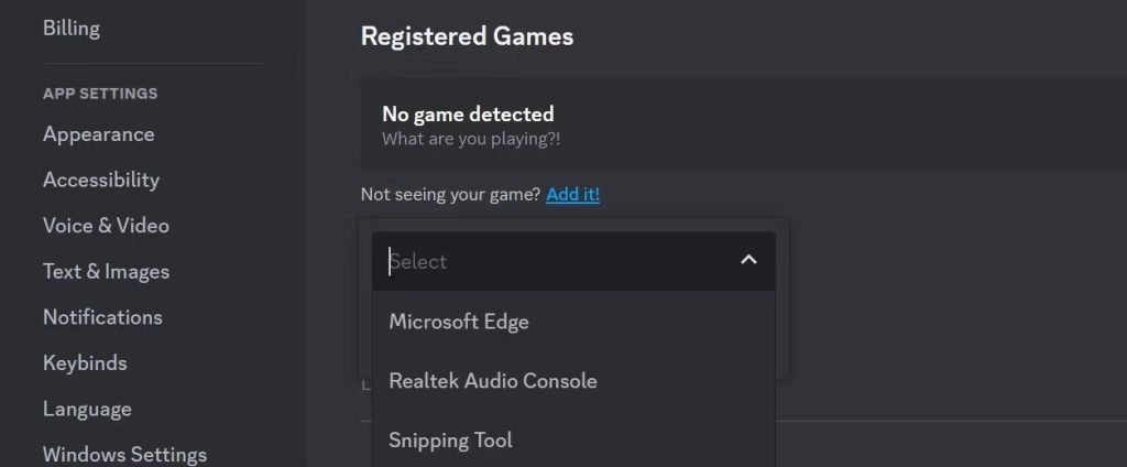 Vaihe 7:NapsautaLisää se!kun olet valinnut pelin pudotusvalikosta, jos Discord ei pysty tunnistamaan peliä automaattisesti.