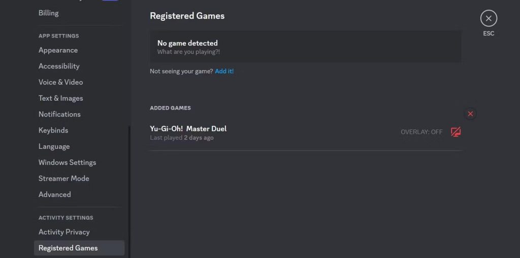Vaihe 6:Ohita tämä vaihe, jos peli on jo lisätty sinne. Suorita peli uudelleen Discordin ollessa auki, jos se ei ole vielä siellä; muuten sovellus havaitsee sen itse.