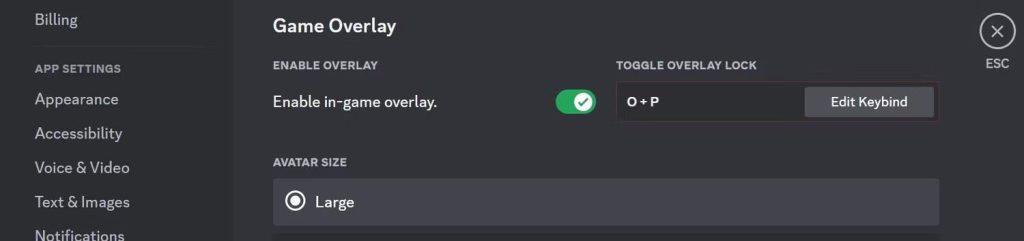 Huomautus:Varmista, että valitsemaasi pikanäppäintä ei ole jo määritetty toiselle pelitoiminnolle ennen kuin muutat sitä. Jos annat pelille saman pikanäppäimen kahdesti, se suorittaa sisäisen toimenpiteen Discord-peittokuvan avaamisen sijaan.