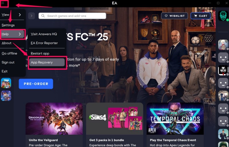 8. Suorita App Recovery Windows 11 -tietokoneesi tai kannettavan tietokoneen EA-sovelluksessa