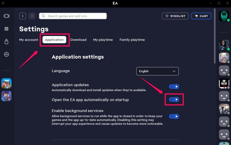 Noudata siis alla olevia ohjeita varmistaaksesi, että EA-sovellus on määritetty lataamaan päivitykset automaattisesti, ja käynnistä sovellus uudelleen ladataksesi sen uusimmat päivitykset Windows 11 -laitteellesi: