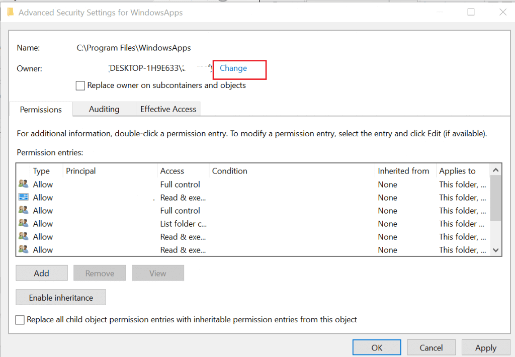 Muutamalla kansion sijaintia ja ottamalla WindowsApps-kansion omistusoikeuden, saatat pystyä ratkaisemaan virheen ja saada takaisin pääsyn kyseiseen sovellukseen.
