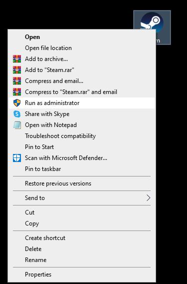 Tapa 2: Avaa Steam-asiakasohjelma järjestelmänvalvojan oikeuksilla