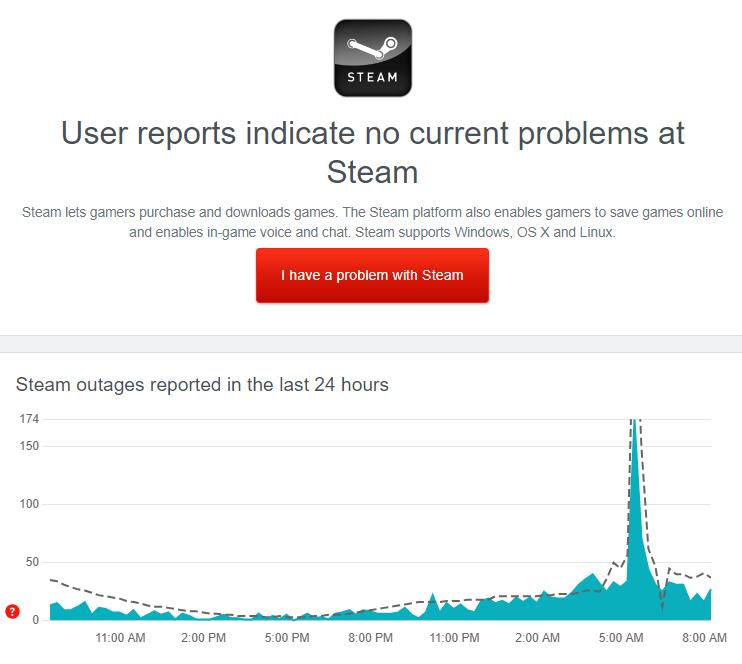 Suosittelemme odottamaan, kunnes Steam-palvelimet ovat jälleen online-tilassa, jos tulokset osoittavat, että ne ovat parhaillaan ylläpidossa tai käyttökatkon aikana.