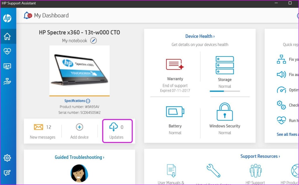 Voit ladata ja asentaa päivityksiä, sinun on käytettävä OEM: n virallista sovellusta. Olemme selittäneet vaiheet tehdä samat HP -kannettavan tietokoneen kanssa alla olevan HP -tukiasiassistentin sovelluksen avulla: