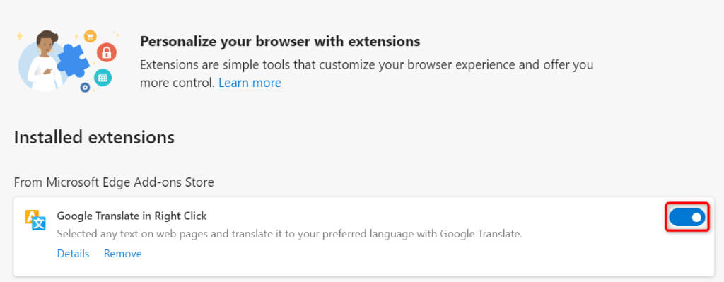 - ValitaKromiKolme pistettä oikeassa yläkulmassa ja valitsePidennys-Hallitse laajennuksia.