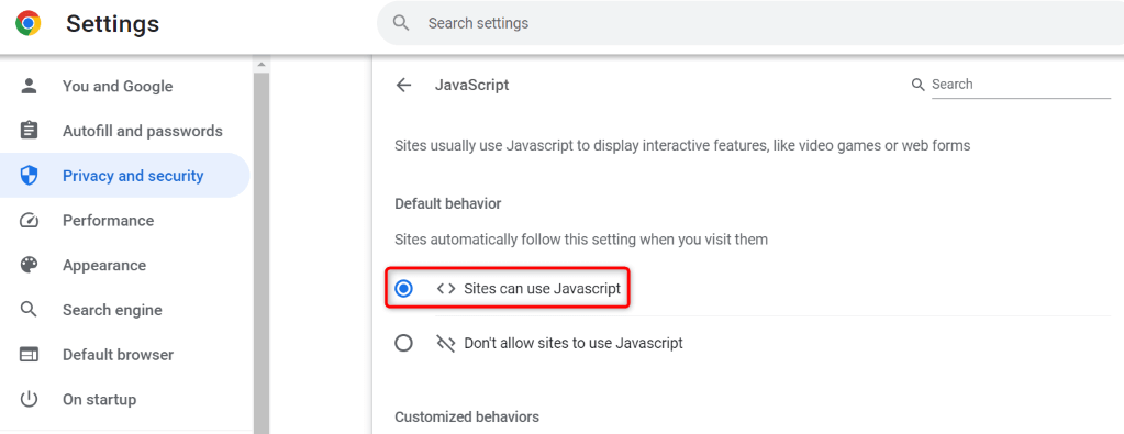 Yksi syy siihen, että Google Chat ei ladattaa, on se, että verkkoselaimesi JavaScript -vaihtoehto on kytketty pois päältä. Monet sivustot luottavat tämän tekniikan toimintaan, ja nämä sivustot eivät voi toimia oikein, jos ominaisuus on poistettu käytöstä selaimessa.